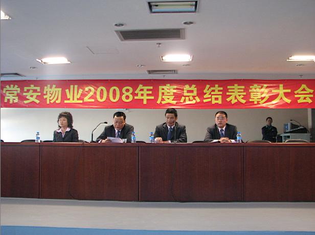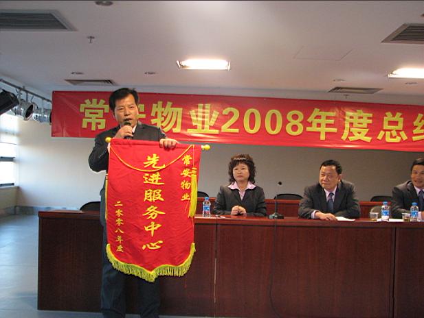 常安物業(yè)服務(wù)有限公司于2009年1月17日舉行了年終總結(jié)表彰大會。會上公司董事長張武先生對全體員工在過去一年的工作中的精誠努力、協(xié)同奮進、開拓進取,取得的成效做出了肯定。并對2008年度先進服務(wù)中心、優(yōu)秀員工進行了表彰。